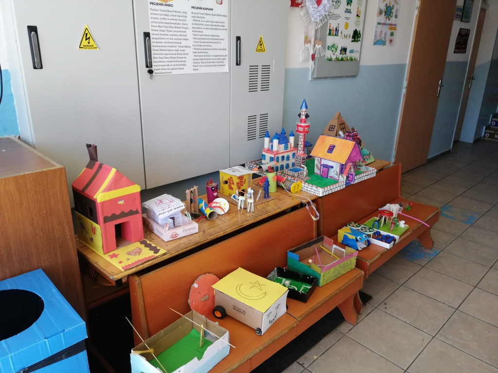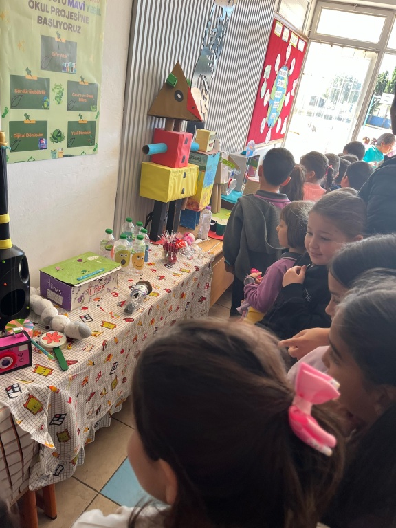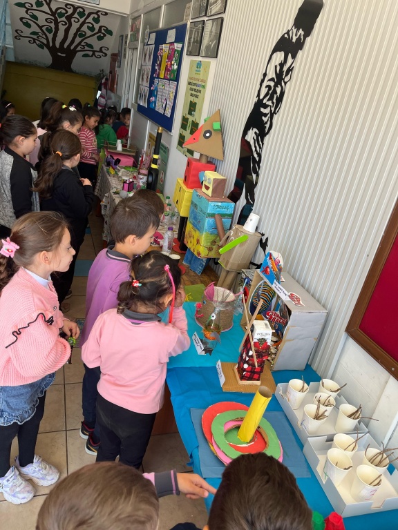 Enerji Dostu Mavi Yeşil Okul , Eko Okul, Sıfır Atık Projesi Kapsamında Atık Malzelerden Öğrencilerimizin Yaptıkları Geri Dönüşüm Etkinliği ile İlgili Sergi